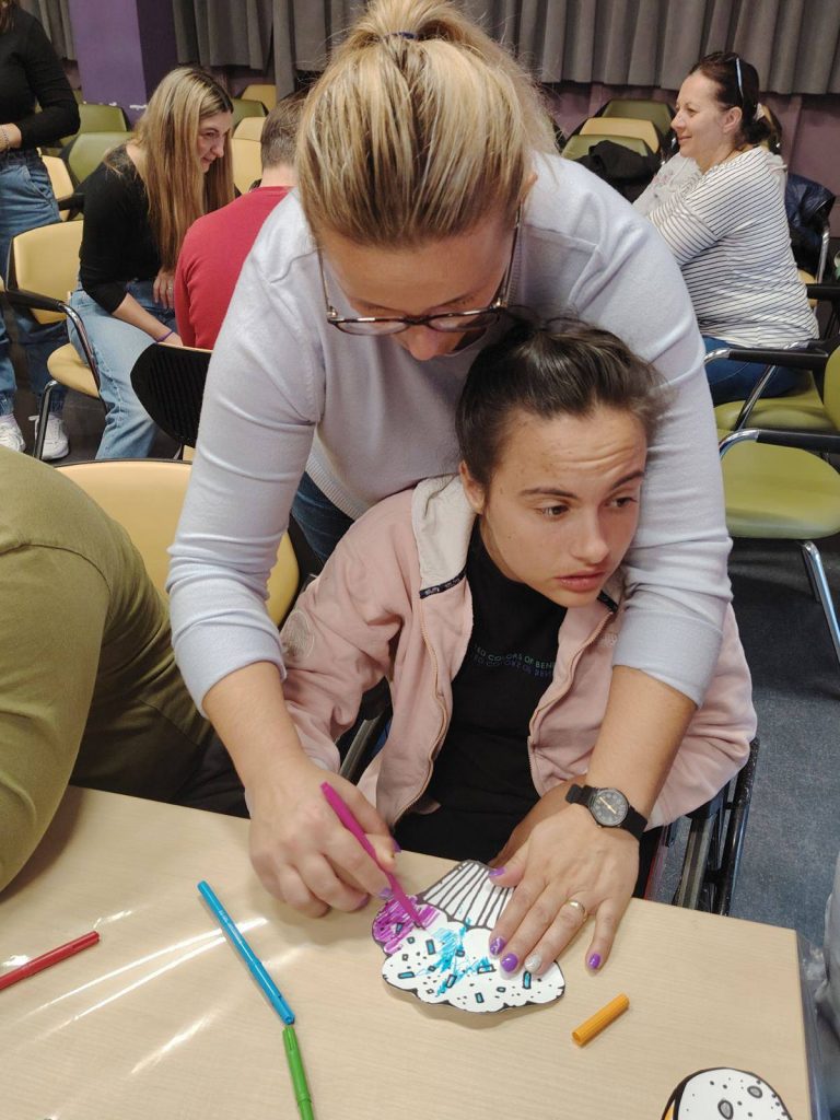 Već utabanim i dobro poznatim nam stazama prekrivenim gdje gdje lišćem koračali smo sunčanog listopadnog četvrtka (16.-tog) na još jednu u nizu radionicu “Čitam ti priču” prema programu Poludnevnog boravka. Dragocjenih sat vremena proveli smo u ugodnom društvu naše Maje koja nam je pročitala 2 priče usko povezane, jedna više druga nešto manje, sa Danom kruha: “Anin kruščić” (G. K.) i “Kolač od blata” (K. R.). Neki od korisnika su ponovili znanje, a neki iznova usvojili o procesu nastanka 1 kruha kao i koje sve sastojke sadrži u svom tijestu. Nakon teorijskog djela uslijedio je i onaj praktični – kreativni gdje smo svatko na svoj maštovit način obojili određeni kruščić, pecivo ili kolač baš po svom ukusu.
