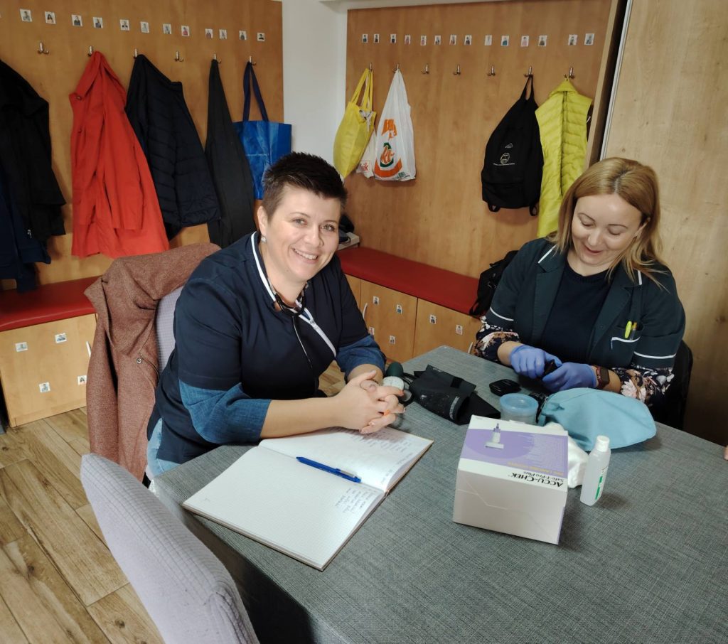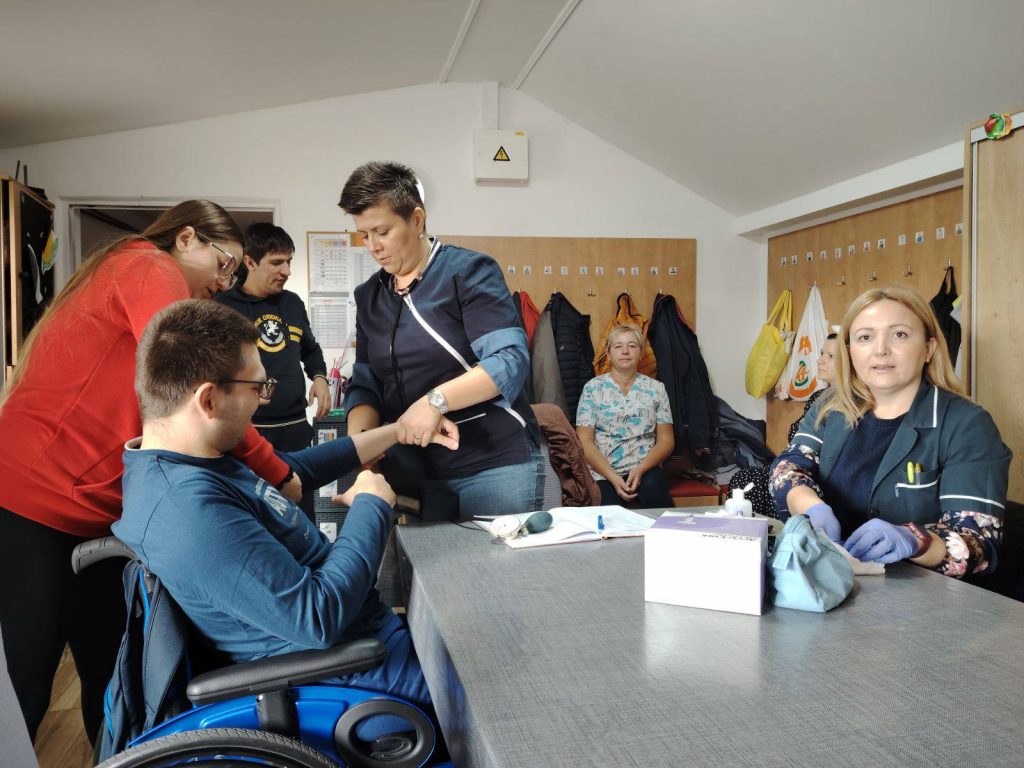 U četvrtak, 23. listopada, jutarnja grupa Maslačaka je odmah po dolasku u prostore udruge, ugostila već dobro nam znane patronažne sestre, 2 Ivane, uz budnu podršku naše medicinske sestre Natali. Zdravlje nam je vrlo važno i rado ga kontroliramo (neki sa više neki sa manje opreza), barem šećer u krvi iz prsta i tlak, u njihovoj nadležnosti. Možemo sa ponosom reći kako je misija (smanjenje straha od odlaska na kontrolne preglede) više nego uspješno izvršena. U pozadini radionica poludnevnog boravka svakoga dana neizostavan medij je glazba.
