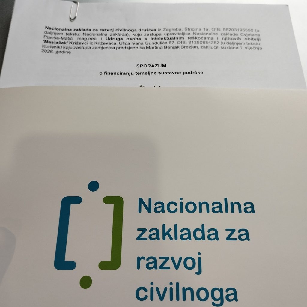 Udruga „Maslačak“ Križevci bila je 3 godine korisnica Institucionalne podrške Nacionalne zaklade te je s 01.01.2026. godine ušla u temeljnu sustavnu podršku Nacionalne zaklade koja će nam pružiti financijsku stabilnost kako bi se u narednom razdoblju mogli posvetiti kvalitetnom pisanju i provođenju projekata, programa i socijalnih usluga za svoje korisnike, jer su nam naši Maslačci na prvom mjestu.