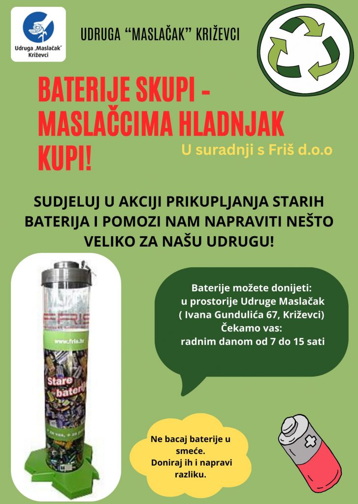 krenula je naša akcija sakupljanja starih baterija pod logom “Baterije skupi-Maslačcima hladnjak kupi”.