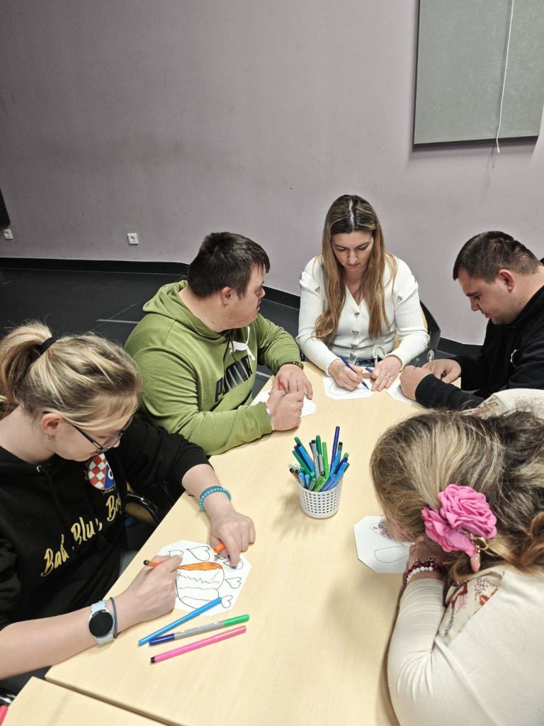U četvrtak, 19. veljače smo posjetili Gradsku knjižnicu “Franjo Marković” Križevci i sudjelovali na prekrasnoj radionici. Čitali smo priču „Zaljubljeni Žabac“ koja govori o Žapcu koji je jednog dana shvatio da mu srce brže kuca kad vidi Patkicu. Bio je zbunjen i nije znao što mu se događa, pa je pitao prijatelje za savjet. Kroz priču je otkrio da je to – ljubav. Naučio je da je ljubav nešto lijepo, da nas čini sretnima i hrabrima te da je važno pokazati svoje osjećaje. Pouka priče: Ljubav je nešto prirodno i posebno, a svoje osjećaje trebamo dijeliti s drugima bez straha. Nakon čitanja razgovarali smo o tome što za nas znači ljubav, a zatim smo crtali svoja srca u šarenim bojama. Svako srce bilo je drugačije, posebno i veselo – baš kao i mi. Hvala našoj knjižničarki Maji na toplom dočeku i lijepom druženju.