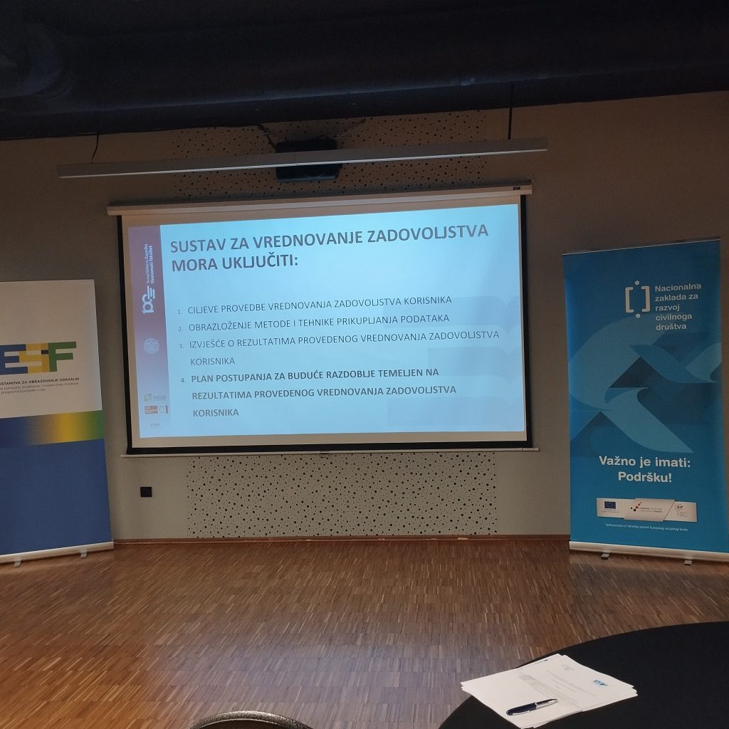 Sudionicima se na početku izobrazbe obratio zamjenik upraviteljice, gospodin Luka Bogdan, naglasivši važnost sustavnog pristupa praćenju zadovoljstva korisnika, članova i partnera u organizacijama civilnoga društva. Radionicu je vodila izv. prof. dr. sc. Ines Dužević s Katedre za trgovinu i međunarodno poslovanje Ekonomskog fakulteta Sveučilišta u Zagrebu, a sudionici su kroz edukaciju i praktični rad, imali priliku razviti pristupe koji će pridonijeti jačanju kvalitete rada udruga, boljem razumijevanju potreba korisnika te dugoročnom razvoju organizacija civilnoga društva.