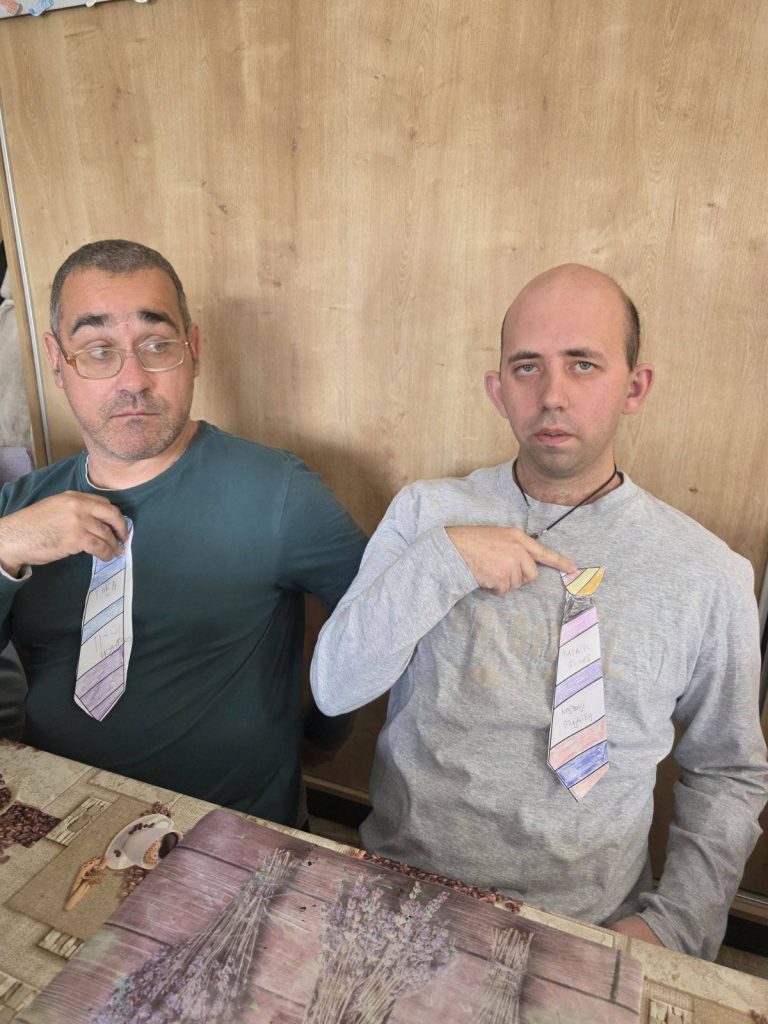 Tijekom razgovora korisnici su dijelili što najviše vole raditi s očevima te su se prisjećali najdražih uspomena. Radionica je protekla u toploj i emotivnoj atmosferi. Nakon razgovornog djela uslijedila je kreativna izrada papirnatih kravata koje su korisnici ukrasili i ispisali kratke poruke za svoje očeve, udomitelje, stričeve, tetke i djedove.