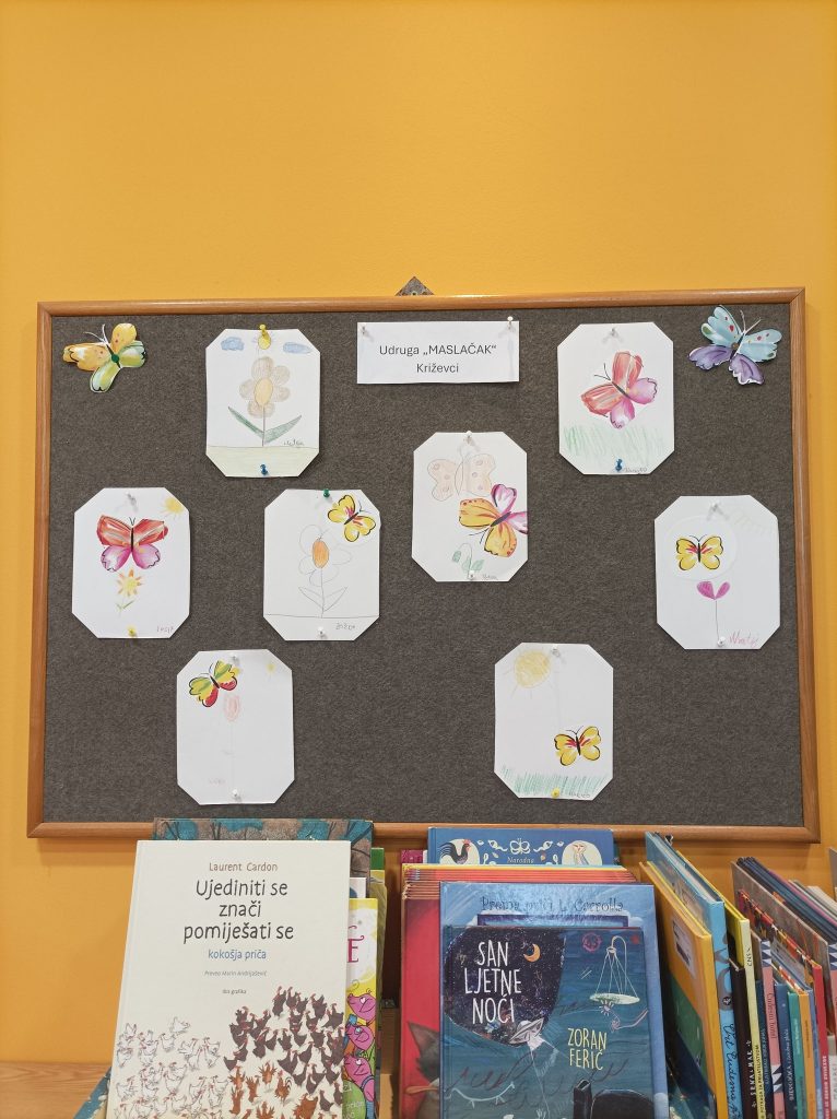 Danas smo posjetili Gradsku knjižnicu “Franjo Marković” Križevci gdje nam je knjižničarka Maja u još jednoj radionici ispričala priču “Ježeva kuća – proljeće” te knjigu “Proljetne boje”. Nakon zanimljivog slušanja, korisnici su sudjelovali u raspravi o priči i zajedno otkrivali koje su to sve boje proljeća. Za kraj smo uživali u kreativnoj radionici gdje su svi crtali ono što su zapamtili iz priče, a nastali su pravi mali proljetni radovi puni boja i mašte. Hvala teti Maji i knjižnici na toplom i inspirativnom druženju!