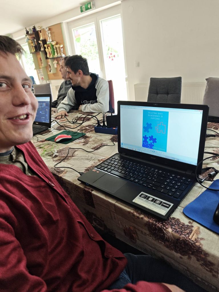 Također, naši su članovi zajedno s voditeljem Markom na satu informatike izrađivali letke na temu autizma gdje su kroz svoje radove prikazali misli, osjećaje i simbole, pokazujući kako oni vide i doživljavaju ovu temu.